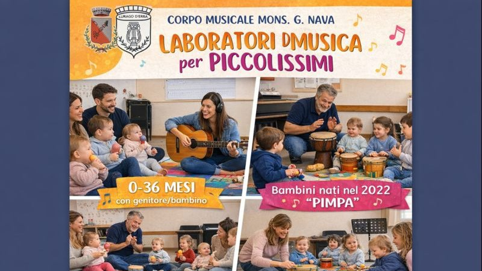 Il Corpo Musicale Monsignor Giuseppe Nava promuove da anni i Laboratori di Musica per Piccolissimi, un progetto educativo pensato per accompagnare i bambini nei primi anni di vita alla scoperta della musica come linguaggio naturale di espressione, relazione e crescita. I corsi sono strutturati come percorsi di esperienza condivisa tra genitore e bambino, nei quali il suono, la voce, il movimento e il gioco diventano strumenti fondamentali per stimolare lo sviluppo sensoriale, emotivo e motorio. Attraverso attività musicali guidate, i bambini imparano ad ascoltare, a riconoscere i suoni, a muoversi nello spazio e a vivere la musica come momento di benessere e relazione.