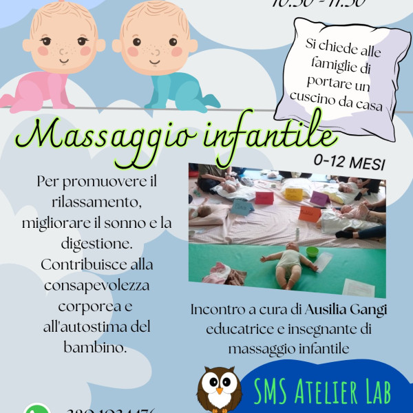 L'incontro è a cura di Ausilia Gangi, educatrice e insegnante di massaggio infantile.