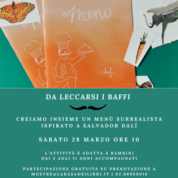 Salvador Dalí, il maestro del Surrealismo, non ha posto freni alla fantasia neppure in fatto di cucina. Scorrendo le pagine di un suo famoso ricettario ci si imbatte infatti in tacchini con code a forma di spazzolino da denti e farfalle ben disposte in file ordinate per arricchire un succulento piatto d’aragosta. Da qui partiremo per raccontare ai bambini le opere di Dalí e leggere insieme una storia; sarà poi il loro turno di comporre un menù surrealista a partire dalle immagini di Dalí e da alcuni dei cibi che lo stesso artista usò nel suo ricettario. L’attività è rivolta a bambini dai 5 agli 11 anni ed è richiesta la presenza di un accompagnatore per l’intera durata. Attività gratuita su prenotazione scrivendo a [email protected] o chiamando lo 02.66989018.