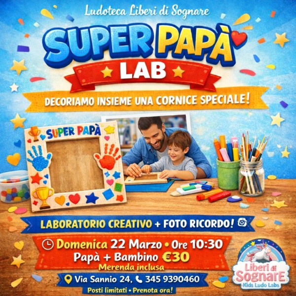 Papà e bambini decoreranno insieme una cornice speciale, piena di colori, impronte e fantasia… per custodire un ricordo unico della Festa del Papà.