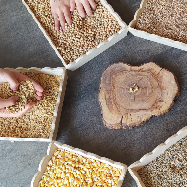 Sediamoci sul prato e ascoltiamo la storia di Teresa, la bambina dei semi 'magici'.. Un laboratorio dove ascoltare, sognare, toccare con mano e 'sentire' sei diverse tipologie di semi per conoscerli e trasformarli in opere…