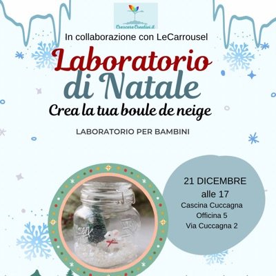 In questo laboratorio speciale i bambini potranno realizzare con le proprie mani una vera boule de neige, la celebre “palla di neve” che, quando viene agitata, fa cadere una pioggia scintillante su un piccolo mondo incantato!