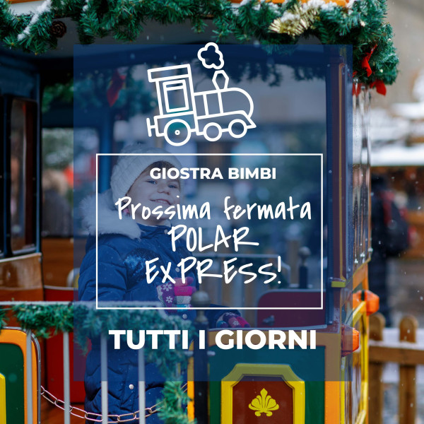 Sali a bordo del Trenino del Polar Express e vivi un’esperienza natalizia unica all’interno del nostro Villaggio di Natale!Un evento magico pensato per bambini e famiglie, dove la fantasia prende vita tra luci scintillanti, musica e personaggi incantati.Il percorso del trenino attraversa un piccolo mondo da fiaba popolato da orsetti curiosi, elfi allegri e naturalmente Babbo Natale, pronto a salutare ogni passeggero con un sorriso e una foto ricordo.Ogni giro è un viaggio di emozioni!Un'attività imperdibile per chi ama il Natale, ideale per vivere un momento di gioia e stupore insieme a tutta la famiglia!ORARI GIOSTRADal lunedì al venerdì dalle 16:00 alle 19:00Sabato e domenica dalle 10:00 alle 12:30 e dalle 14:30 alle 19:30PREZZO BIGLIETTO1 GETTONE 2,50€6 GETTONI 10€*biglietto non rimborsabile
