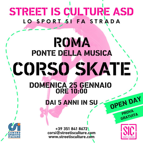 DOMENICA 25 GENNAIO ORE 10:00, OPEN DAY DI SKATEBOARD A ROMA