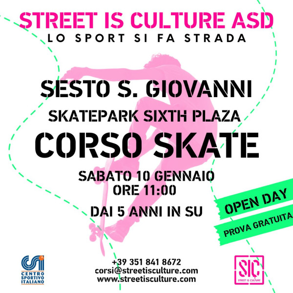 SABATO 10 GENNAIO ORE 11:00, OPEN DAY DI SKATEBOARD A SESTO SAN GIOVANNI