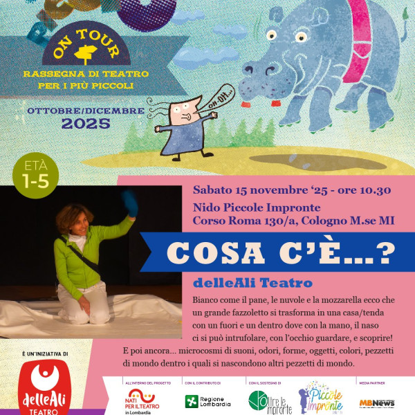 Piccino Picciò On Tour, si inserisce all’interno del progetto NATI PER IL TEATRO in Lombardia, con il contributo di Regione Lombardia C1 - Avviso Unico 2025, media partner MBnews, e consiste in un’ulteriore opportunità che delleAli Teatro mette a disposizione per i bambini e le bambine e le loro famiglie di incontrarsi, dialogare, riappropriarsi di spazi e socialità, grazie alla magia del teatro alla bellezza e l’amore per l’arte e alla fruizione culturale intergenerazionale.