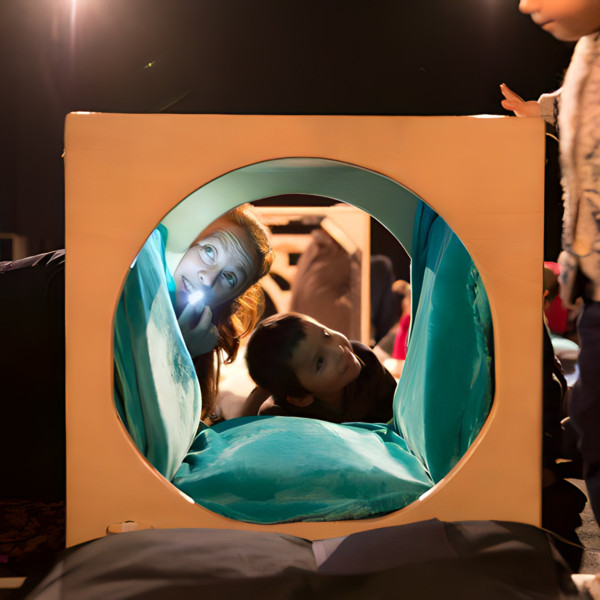 Una narrazione sensibile, tutta da toccare e da esplorare, da scoprire con gli occhi, le mani e i piedi, con l’udito e con l’olfatto. Materiali semplici e naturali (iuta, lana, corda, carta, legno, pula di grano, semi…) costruiscono un piccolo ambiente che gradualmente prende forma, si trasforma sino a riempire tutto lo spazio. Sino a divenire, idealmente, mondo. Gli oggetti di scena vengono vissuti e abitati dai piccoli che, stimolati dalle attrici, prendono possesso dello spazio scenico. Senza un’indicazione di cosa fare, solo di come fare. La filastrocca, il canto ed il suono della voce diventano chiavi per entrare in relazione con il ‘Teatro’ come mondo, rito di passaggio, territorio del magico.