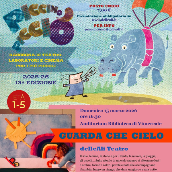Le prenotazioni per gli appuntamenti in programma nell'ambito di Piccino Picciò 2025/2026 sono aperte ed effettuabili sul sito di delleAli Teatro: https://www.delleali.it/container_rf/piccino-piccio/ .
