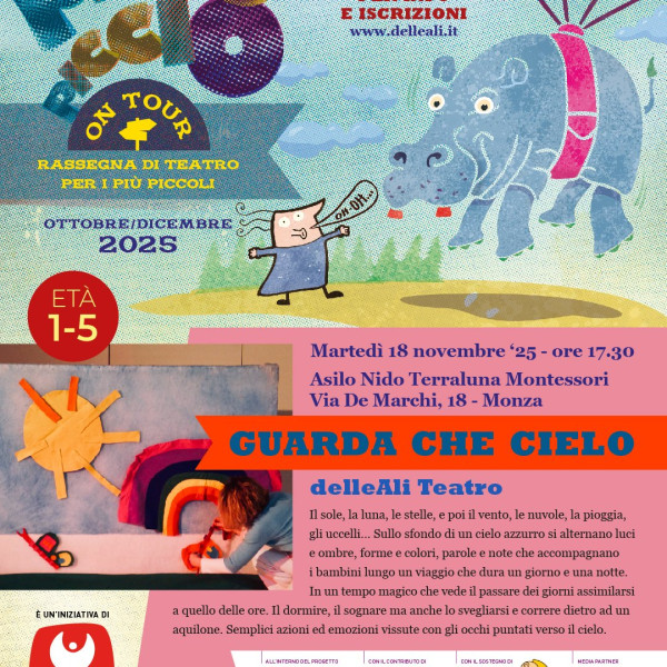 *Piccino Picciò 2025/2026 è un’iniziativa di delleAli Teatro all'interno del progetto NATI PER IL TEATRO con il contributo di Fondazione di Cariplo, il patrocinio del Comune di Vimercate, la collaborazione del Bloom di Mezzago e della Biblioteca di Vimercate. Sponsor della rassegna: BrianzAcque; media partner: MB NEWS e Monzaperibambini.