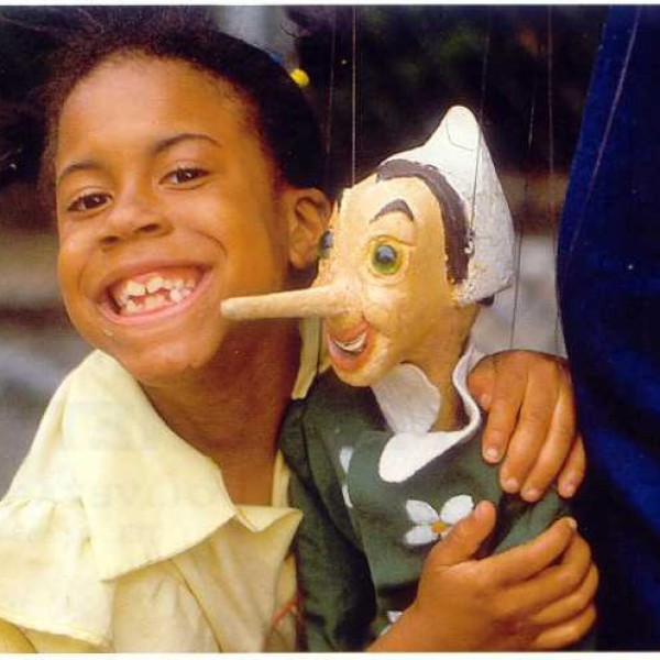 Ecco a voi lo spettacolo più storico, più famoso, più marionettistico del nostro teatro. Più di così!Il celebre burattino, che nel nostro caso è una marionetta, ha un papà che si chiama Geppetto, litiga con un grillo parlante assai saccente, si fa imbrogliare dal Gatto e dalla Volpe, viene salvato dalla Fatina dai capelli turchini.Alcuni personaggi sono in carne e ossa, altri sono fatti di legno.Del libro originale abbiamo cambiato solo una cosa (ma che il signor Collodi non si arrabbi!): la fine, dove Pinocchio diventa un ragazzino per bene.Noi ne abbiamo preparata un’altra, che è tutta una sorpresa.Ovviamente a favore della nostra simpatica marionetta dal naso lungo.
