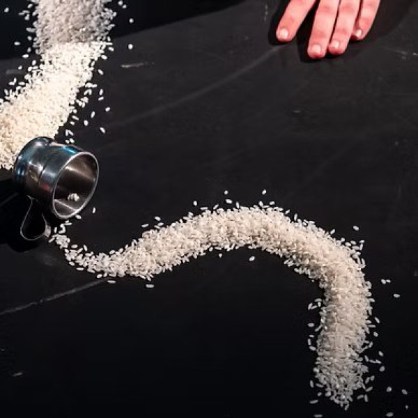 Un lungo tavolo bianco. Forchette, coltelli, cucchiai e cucchiaini. Piatti grandi, piccoli, lisci, tondi. Tazze e bicchieri. E il cibo non c’è? Forse qualche chicco arriverà. Due bizzarri personaggi aspettano l’inizio di un pranzo da re inventandosi un nuovo modo di apparecchiare. Tutto diventa musica canto gioco.
