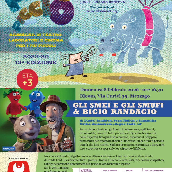 Età consigliata +3 anni - Ingresso cinema: 7,00 € / Intero - 5,00 € / Ridotto over 65 e Soci Bloom -4,00 € / Ridotto Under 26*