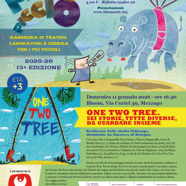 Età consigliata +3 anni - Ingresso cinema: 7,00 € / Intero - 5,00 € / Ridotto over 65 e Soci Bloom -4,00 € / Ridotto Under 26*