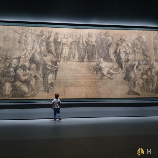 L'Ambrosiana è infatti un museo antichissimo, il primo museo ad essere stato aperto al pubblico e custodisce migliaia di opere (tranquilli, bambini, non le vedremo TUTTE!) di artisti molto importanti: conosceremo Botticelli e la sua arte elegante, Tiziano, che inventò un modo tutto nuovo per usare i colori, incontreremo i disegni originali del grande inventore Leonardo da Vinci, vedremo un disegno di Raffaello davvero, davvero enorme!